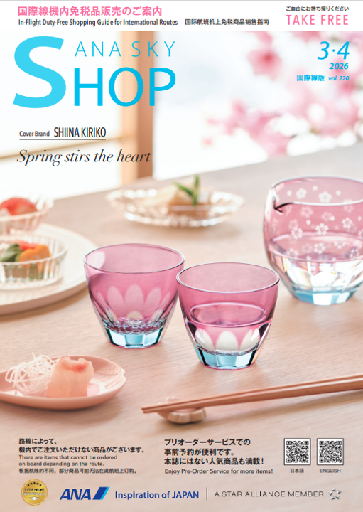 ANA様 機内販売誌『ANA SKY SHOP』の表紙に掲載。弊社サクラサクおよびサクラサク片口が販売されます